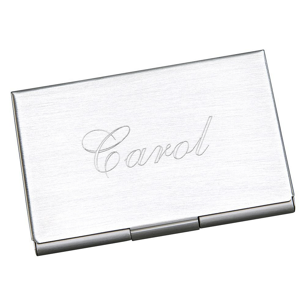 Back to results Scroll Items 3558 of 11071 Main view Product Details Sheridan Silversmiths Silver High-polished Business Card Case — Take pride in the presentation, this elegant, brightly polished card case is a great way to carry and present business cards. The card case will hold up to 12 standard size business cards and is made in a non-tarnishing nickel plated finish. The plain finish is perfect if you would like to add a personalized engraving to finish off the item. Overall dimensions are 3.75" x 2.25". This item is gift boxed and also includes a black velveteen pouch. Silver High-polished Business Card Case Model #047105201017 List $20.00 You pay $16.95 In stock Ships next business day [?] Your Price Match is Active Your request for a price of $0.00 for a minimum quantity of has been accepted. You have [time] left to purchase this item for $0.00 instead of $16.95 each. Find a Lower Price? We BEAT All Authorized Retailers [?] FEATURESMaterial:SilverplateFinish:SilverOccasion:Bon voyage, Business & office, Mother`s Day, Teacher gifts, Team & coach gifts, Father`s DayStyle:Classic, Minimal, Travel ReadyDisplay Type:not applicable n/a Approx. Overall Dimensions:3 3/4"x2 1/4"x5/8" This item ships in its own box SHARE THIS ITEM Share on Facebook