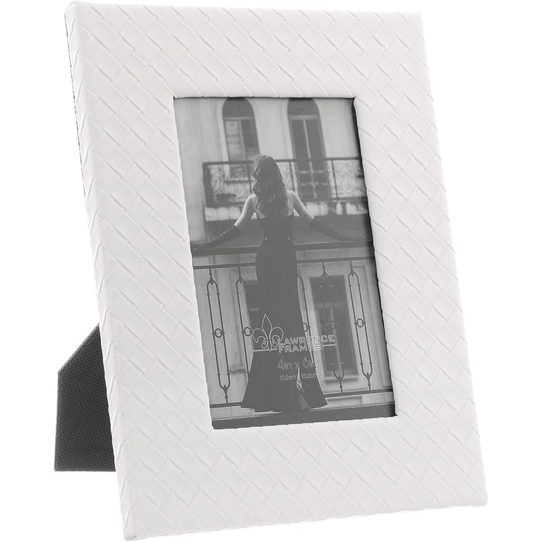 Main view Product Details Lawrence Frames® WOVEN White bonded leather 4x6 frame — Beautifully crafted in white bonded woven pattern leather.Glare resistant glass lens. Easel back for portrait or landscape tabletop display.By Lawrence Frames. WOVEN White bonded leather 4x6 frame Model #751148089364 List $23.00 You pay $17.95 This item IS in stock and can be expected to ship 12/02/2025 Your Price Match is Active Your request for a price of $0.00 for a minimum quantity of has been accepted. You have [time] left to purchase this item for $0.00 instead of $17.95 each. Find a Lower Price? We BEAT All Authorized Retailers [?] Approx. Overall Dimensions:6 5/8"x8 5/8"x3/4" This item ships in its own box SHARE THIS ITEM Share on Facebook