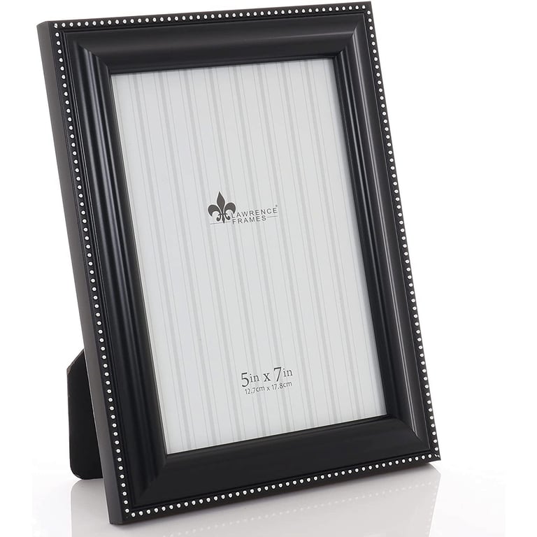 Main view Product Details Lawrence Frames® Black w/silver bead 5x7 frame — Elegant satin-black frame with its silver bead trim enhances your photo's look.Matched hardwoods have a fine furniture finish.Dual easel backing is produced with acid free stock to insure a lifetime of enjoyment and protection. Wall mount included for easy hanging. Glare resistant glass lens.By Lawrence Frames®, crafting fine frames for generations. Black w/silver bead 5x7 frame Model #751148053686 List $27.00 You pay $20.95 This item IS in stock and can be expected to ship 02/06/2026 Your Price Match is Active Your request for a price of $0.00 for a minimum quantity of has been accepted. You have [time] left to purchase this item for $0.00 instead of $20.95 each. Find a Lower Price? We BEAT All Authorized Retailers [?] FEATURESDisplays:5"x7"Material:Wood (full grain)Finish:Black, SilverOccasion:Business & office, Congratulations, Employee honors, Home decorating, Thank-Motivate-RewardStyle:Classic, GlamOrientation:BothBrand:Lawrence Frames®Display Type:Desktop or Wall This item ships in its own box SHARE THIS ITEM Share on Facebook