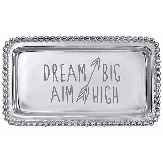 Main view Product Details Mariposa® DREAM BIG / AIM HIGH 7in STATEMENT TRAY crafted by Mariposa® — DREAM BIG / AIM HIGH Let this tray serve as inspriation for your recipient and their team. Also perfectly sized to fit a check, making this a great way to jazz up a monetary gift. The STATEMENT TRAY was designed by Michael Updike and hand-crafted by Mariposa. SendAFrame stocks the entire Mariposa® picture frame line - and related Brand and Design styled items like this special tray. Click Mariposa® Design Collection Important Note: Mariposa items are hand engraved. Your piece may differ slightly from the photo. DREAM BIG / AIM HIGH 7in STATEMENT TRAY crafted by Mariposa® Model #808813118567 List $42.00 You pay $38.95 In stock Ships next business day [?] Your Price Match is Active Your request for a price of $0.00 for a minimum quantity of has been accepted. You have [time] left to purchase this item for $0.00 instead of $38.95 each. Find a Lower Price? We BEAT All Authorized Retailers [?] FEATURESMaterial:AluminumFinish:SilverOccasion:Congratulations, Corporate gifts, Employee honors, Group Events + Parties, Friendship, Good luck, Graduation, Inspirational, Military Honors, Team & coach gifts, Thank-Motivate-RewardStyle:Contemporary, Santa Fe, Shabby Chic, Sports & leisure, Words & whimsy, Eco-Friendly-Recycled, Modern (contemporary) wip, Sentiments | ready made, GlamBrand:Mariposa®Display Type:not applicable n/a Approx. Overall Dimensions:6 3/4"x3 3/4"x1/2" This item ships in its own box SHARE THIS ITEM Share on Facebook