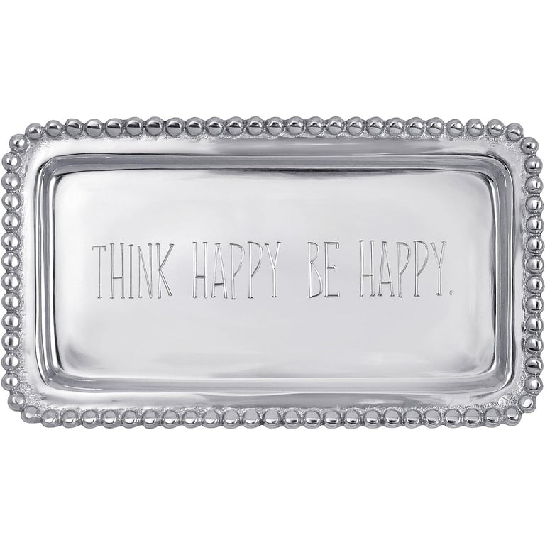 Main view Product Details Mariposa® THINK HAPPY BE HAPPY STATEMENT 7in TRAY by Mariposa® — Give the gift of inspiration and spirit with the THINK HAPPY BE HAPPY 7"x4" STATEMENT Tray. This timeless treasure is great for entryways, dressers and desktops. Handcrafted from 100% recycled, buffed-until-brilliant aluminum. Beautifully boxed in a Mariposa Gift Box - makes gifting easy! Shop the entire collection: Mariposa® Design Collection Important Note: Mariposa items are hand engraved. Your piece may differ slightly from the photo. THINK HAPPY BE HAPPY STATEMENT 7in TRAY by Mariposa® Mariposa® WINTER CELEBRATION Savings - Buy More / Save More * Add this item to your cart for the full details of this promotion. Conditions may apply. Model #808813132525 List $42.00 You pay $38.95 In stock Can be shipped today [?] Your Price Match is Active Your request for a price of $0.00 for a minimum quantity of has been accepted. You have [time] left to purchase this item for $0.00 instead of $38.95 each. Find a Lower Price? We BEAT All Authorized Retailers [?] FEATURESMaterial:AluminumFinish:SilverOccasion:Birthday, Business & office, Congratulations, Corporate gifts, Employee honors, Friendship, Good luck, Graduation, Inspirational, Sweet 16, Team & coach gifts, Thank-Motivate-Reward, Weekend Host GiftsStyle:Contemporary, Eco-Friendly-Recycled, Modern, Santa Fe, Shabby Chic, Sports & leisure, Words & whimsy, Sentiments | ready madeBrand:Mariposa®Display Type:not applicable n/a Approx. Overall Dimensions:6 3/4"x3 3/4"x1/2" This item ships in its own box SHARE THIS ITEM Share on Facebook