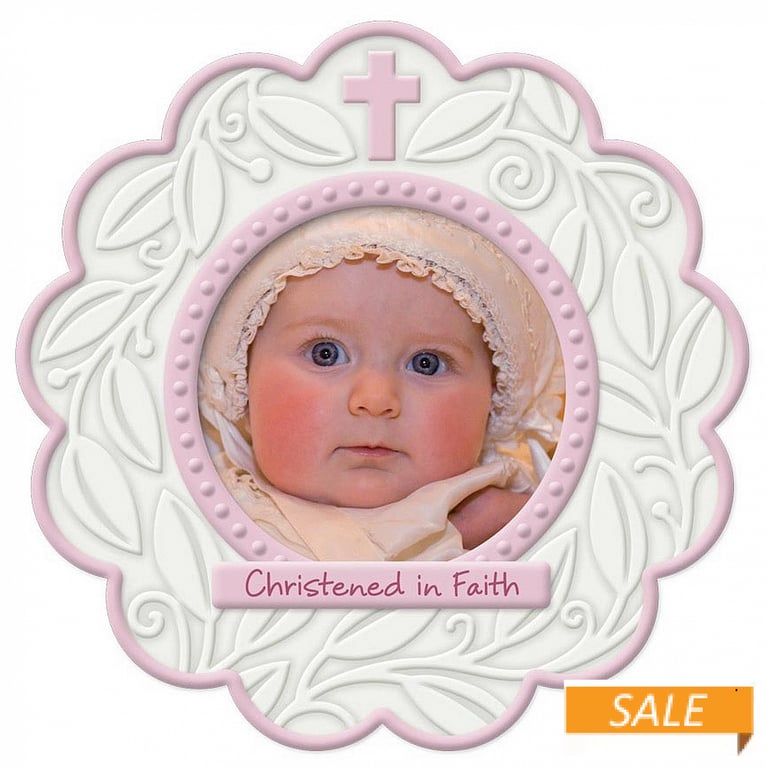Product Details Enesco Pink/Round CHRISTENED IN FAITH by Enesco® — CHRISTENED IN FAITH is an adorable frame to help capture the moment of this special occasion. An instant perfect gift of love for godparents, grandparents - - even the baby's room as a keepsake! Glare resistant glass lens. Easel back for tabletop display.Another special occasion frame from Enesco Baby®. Pink/Round CHRISTENED IN FAITH by Enesco® Model #045544585903 List $12.50 You pay $6.90 In stock Ships next business day [?] Your Price Match is Active Your request for a price of $0.00 for a minimum quantity of has been accepted. You have [time] left to purchase this item for $0.00 instead of $6.90 each. Find a Lower Price? We BEAT All Authorized Retailers [?] FEATURESDisplays:3"x3"Material:CeramicFinish:PinkOccasion:Baby shower, Baptism + Christening, Christmas, New babyStyle:Words & whimsy, Sentiments | ready made, Christian DevotionalsBrand:EnescoDisplay Type:Desktop Only Approx. Overall Dimensions:5 1/2"x5 1/2"x1/2" This item ships in its own box SHARE THIS ITEM Share on Facebook