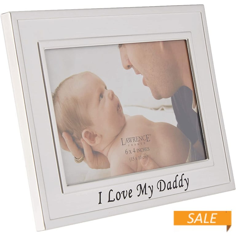 Main view Product Details Lawrence Frames® I LOVE MY DADDY Brushed Silver 6x4 frame — A very pretty, inexpensive salute to a GRANDPA from the Sentiments Collection in brushed silver. I Love My DADDY Add a great photo and you have a gift that will make any Dad smile!Heavy metallic crafted, ridged edging. Beautifully personalized. Holds a 6"x4" photo. Glass lens. Easel back for tabletop display.By Lawrence Frames®. I LOVE MY DADDY Brushed Silver 6x4 frame Lawrence® HOLIDAY CELEBRATION Savings: Buy More / Save More * Add this item to your cart for the full details of this promotion. Conditions may apply. Model #751148059480 List $25.00 You pay $11.90 In stock Can be shipped today [?] Your Price Match is Active Your request for a price of $0.00 for a minimum quantity of has been accepted. You have [time] left to purchase this item for $0.00 instead of $11.90 each. Find a Lower Price? We BEAT All Authorized Retailers [?] FEATURESDisplays:4"x6"Material:SilverplateFinish:SilverOccasion:Valentine`s DayStyle:Words & whimsy, Sentiments | ready madeOrientation:Horizontal OnlyBrand:Lawrence Frames® Approx. Overall Dimensions:7 3/8"x5 3/8"x13/16" This item ships in its own box SHARE THIS ITEM Share on Facebook