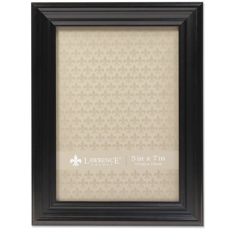 Back to results Scroll Items 3169 of 11051 Family Members 4"x6" - BLACK $10.95 8"x10" - BLACK $16.95 8.50"x11" - BLACK $23.95 5"x5" - BLACK $12.95 8"x8" - BLACK $18.95 Main view Angled Reverse Product Details Lawrence Frames® Classic Black Ridged 5x7 frame by Lawrence Frames® — High quality burnished black composite picture frame. Beautifully finished picture frame that will be a great decorative addition to any room. Includes a two-way easel for table top and wall hangers - for vertical or horizontal display. High quality black velvet backing. Picture frame comes with glass to protect your photo, and is individually boxed. Decorative picture frame Black velvet backing Vertical or horizontal tabletop display or can be hung on a wall with installed hangers Wipe clean with dry cloth, glass included Produced by Lawrence Frames®. Classic Black Ridged 5x7 frame by Lawrence Frames® Model #751148071093 List $18.00 You pay $12.95 In stock Can be shipped today [?] Your Price Match is Active Your request for a price of $0.00 for a minimum quantity of has been accepted. You have [time] left to purchase this item for $0.00 instead of $12.95 each. Find a Lower Price? We BEAT All Authorized Retailers [?] FEATURESDisplays:5"x7"Material:Wood (mdf/engineered)Finish:BlackOccasion:Business & office, Home decoratingStyle:Classic, TraditionalOrientation:BothBrand:Lawrence Frames®Display Type:Desktop or Wall Approx. Overall Dimensions:6 13/16"x8 13/16"x11/16" This item ships in its own box SHARE THIS ITEM Share on Facebook