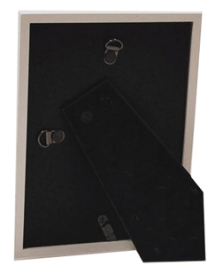 Dual easel for landscape or portrait tabletop use; wall mounting hooks included. Glare resistant glass lens.