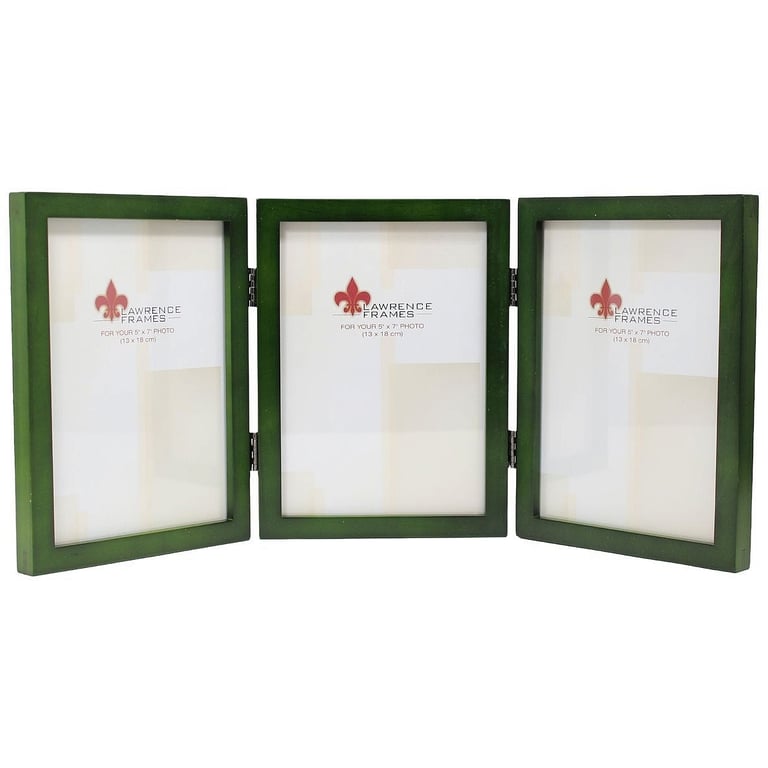 Main view Reverse Product Details Lawrence Frames® Green-stain hinged triple in 4x6 size by Lawrence® — Very nicely crafted with select hardwoods, tailored square corners and quality hinges.Frame edge is a very contemporary ½" all-around.Individual sections have black hardboard backs with swivel security tabs that easily open/lock to insert your prints.Glare resistant glass lenses.Quality crafted expressly for the critical customers of SendAFrame. Green-stain hinged triple in 4x6 size by Lawrence® Model #751148067614 List $37.00 You pay $28.95 This item is currently out of stock and we do not have an expected date at the present time. click here to be automatically notified when it comes back in stock or email merchandising@sendaframe.com for availability information. You can place this item in your shopping cart. It will be added to the 'saved for later' section. Your Price Match is Active Your request for a price of $0.00 for a minimum quantity of has been accepted. You have [time] left to purchase this item for $0.00 instead of $28.95 each. Find a Lower Price? We BEAT All Authorized Retailers [?] FEATURESDisplays:4"x6"Material:Wood (full grain)Finish:GreenOccasion:Birthday, Bon voyage, Business & office, Corporate gifts, Friendship, Home decorating, Housewarming, Thank-Motivate-Reward, Celebrating TravelsStyle:Classic, Contemporary, Traditional, MinimalBrand:Lawrence Frames®Display Type:Desktop or Wall Approx. Overall Dimensions:14 1/8"x6 5/8"x1 1/4" This item ships in its own box SHARE THIS ITEM Share on Facebook
