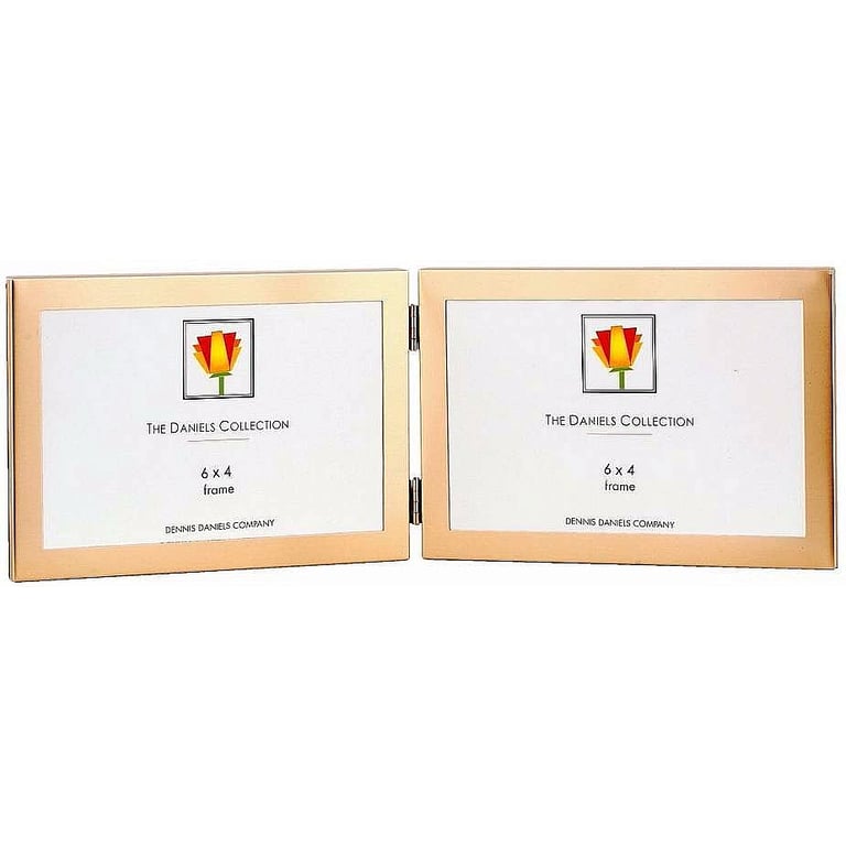 Main view full view Hinge close-up Product Details Dennis Daniels® Hard-to-findgoldplate landscape hinged double by Dennis Daniels® — Dennis Daniels® introduces a line of coated aluminum styles in very fashionable metallic colors.This terrific double piece is gold plated - see Related Items section in the lower right of this page for other pieces.A super hinged double, you will enjoy the fresh look it creates to a photo theme. Glare resistant glass.Crafted by Dennis Daniels® of California. Hard-to-find goldplate landscape hinged double by Dennis Daniels® Model #782680012145 $12.50 This item is currently out of stock and we do not have an expected date at the present time. click here to be automatically notified when it comes back in stock or email merchandising@sendaframe.com for availability information. You can place this item in your shopping cart. It will be added to the 'saved for later' section. Your Price Match is Active Your request for a price of $0.00 for a minimum quantity of has been accepted. You have [time] left to purchase this item for $0.00 instead of $12.50 each. Find a Lower Price? We BEAT All Authorized Retailers [?] FEATURESDisplays:4"x6"Material:AluminumFinish:GoldOccasion:Business & office, Craft Projects, Friendship, Get well, Good luck, Home decorating, Weekend Host Gifts, Housewarming, Inspirational, Military Honors, Mother`s Day, Teacher gifts, Team & coach gifts, Thank-Motivate-Reward, Celebrating Travels, Corporate giftsStyle:Classic, Contemporary, MinimalOrientation:Horizontal OnlyBrand:Dennis Daniels®Display Type:Desktop or Wall This item ships in its own box SHARE THIS ITEM Share on Facebook