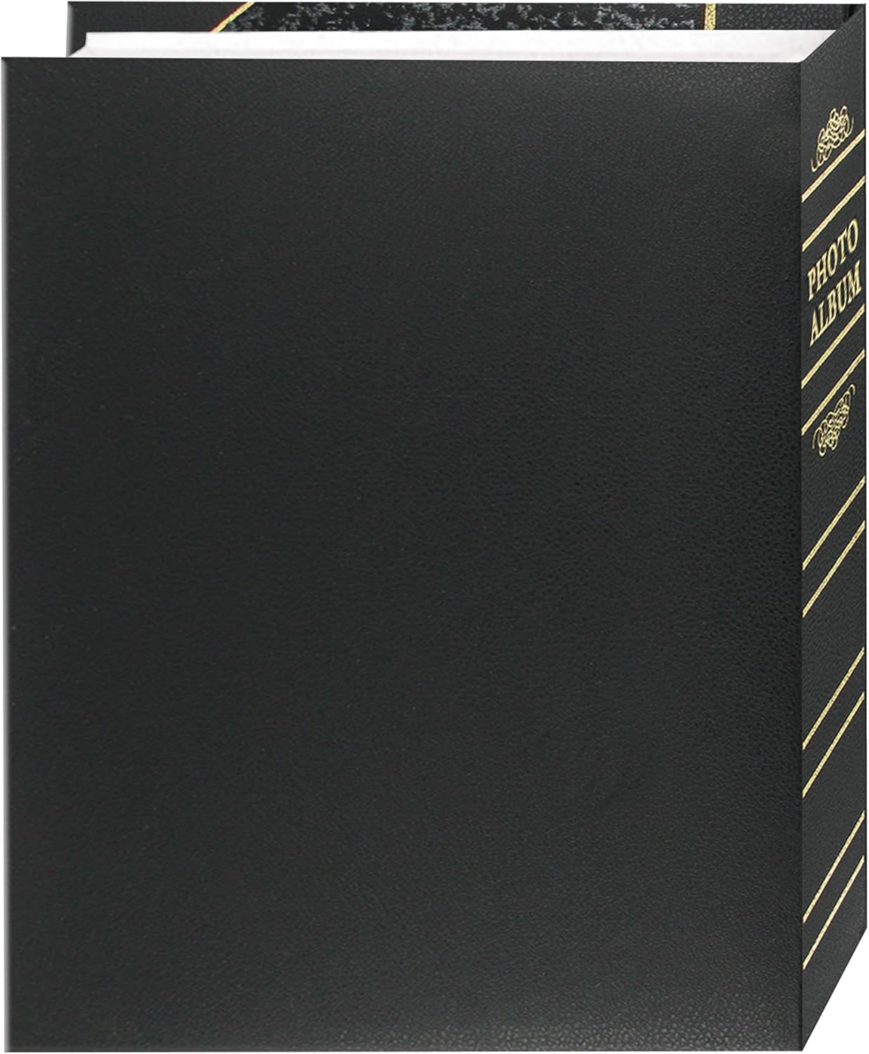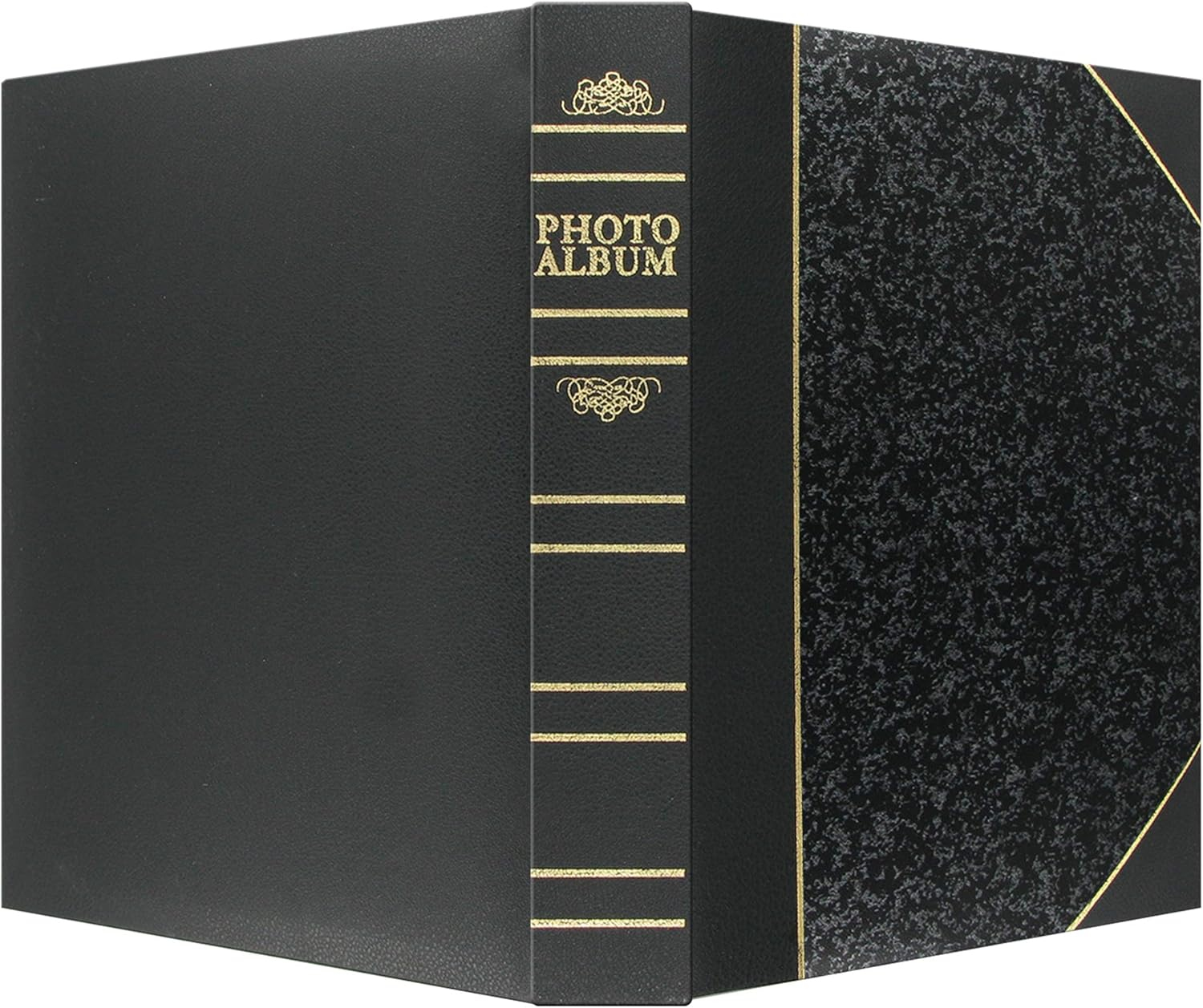• Elegant book cover design with antique gold tooled accents and coordinated "PHOTO ALBUM" spine emblem