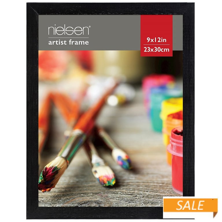 Main view Moulding Detail Product Details Nielsen · Bainbridge® Black ROYAL fine wood frame 9x12 by Nielsen® — Basic Black ROYAL wood frame displays a 9"x12" print in a traditional ¾" flat-top moulding design. ROYAL is an excellent choice to achieve a consistent look, in an opening price point, from Nielsen. Frame includes wall mounts for easy hanging, either vertical or horizontal.Acid-free backing for life-time care of your print. Glare resistant picture frame glass lens.Crafted by Nielsen®. SendAFrame stocks the complete line of Nielsen-Bainbridge ready-made frames to make your projects easy. Click here to view the entire Nielsen® line. Black ROYAL fine wood frame 9x12 by Nielsen® Model #087828254921 List $28.50 You pay $14.90 In stock Ships next business day [?] Your Price Match is Active Your request for a price of $0.00 for a minimum quantity of has been accepted. You have [time] left to purchase this item for $0.00 instead of $14.90 each. Find a Lower Price? We BEAT All Authorized Retailers [?] FEATURESDisplays:9"x12"Material:Wood (full grain)Finish:BlackOccasion:Business & office, Friendship, Home decorating, Team & coach gifts, Thank-Motivate-Reward, Celebrating TravelsStyle:Architectural, Classic, Contemporary, Minimal, TraditionalOrientation:BothBrand:Nielsen · Bainbridge®Display Type:Wall Only This item ships in its own box SHARE THIS ITEM Share on Facebook
