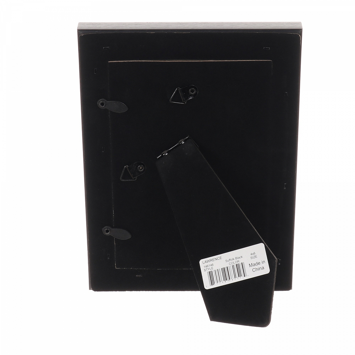 Main view Product Details Lawrence Frames® SUFFOLK Black 4x6 frame by Lawrence® — Quality composite decorative picture frame with satin black wood grain finish. Easy open turn button black velvet backing makes it simple to open and insert your photo. Includes hangers for wall mounting and easel backing for tabletop display. By Lawrence® SUFFOLK Black 4x6 frame by Lawrence® Model #751148082525 List $17.00 You pay $12.95 This item IS in stock and can be expected to ship 02/03/2026 Your Price Match is Active Your request for a price of $0.00 for a minimum quantity of has been accepted. You have [time] left to purchase this item for $0.00 instead of $12.95 each. Find a Lower Price? We BEAT All Authorized Retailers [?] FEATURESDisplays:4"x6"Material:Wood (mdf/engineered)Finish:BlackOccasion:Home decorating, Housewarming, Weekend Host GiftsStyle:Distressed - Weathered, Rustic/Lodge, CoastalOrientation:BothBrand:Lawrence Frames®Display Type:Desktop or Wall Approx. Overall Dimensions:5 5/8"x7 5/8"x13/16" This item ships in its own box SHARE THIS ITEM Share on Facebook