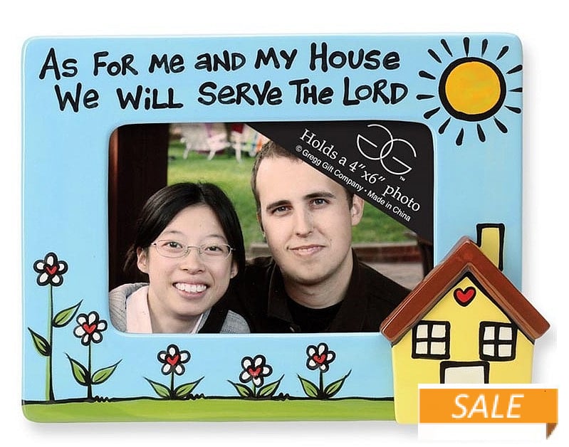 Main view Detail Product Details Enesco AS FOR ME AND MY HOUSE colorful ceramic picture frame by Our Name is Mud — As For Me and My House We Will Serve The LORD This colorful hand-painted frame is a great way to show off your family and what they stand for. Frame displays a 6" x 4" photo behind its glare resistant lens.Easel back for horizontal tabletop display only. Designed and crafted by Our Name is Mud®. AS FOR ME AND MY HOUSE colorful ceramic picture frame by Our Name is Mud Model #796437149541 List $22.00 You pay $10.90 In stock Ships next business day [?] Your Price Match is Active Your request for a price of $0.00 for a minimum quantity of has been accepted. You have [time] left to purchase this item for $0.00 instead of $10.90 each. Find a Lower Price? We BEAT All Authorized Retailers [?] FEATURESDisplays:4"x6"Material:CeramicOccasion:Home decorating, Housewarming, InspirationalStyle:Bold Colors, Contemporary, Words & whimsy, Christian DevotionalsOrientation:Horizontal OnlyBrand:Enesco This item ships in its own box SHARE THIS ITEM Share on Facebook