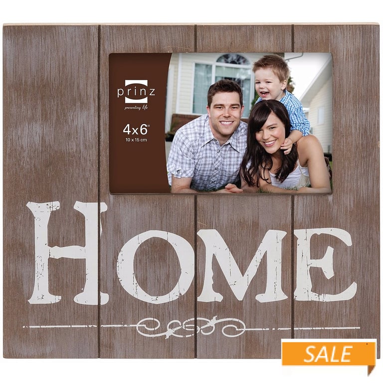 Main view Detail Product Details Prinz® frames & albums Weathered-Look HOME Natural stain frame by Prinz® — From the Prinz Easy Living Collection: evoking rustic cabins and cozy cottages, the IT'S ONLY NATURAL collection brings home the feeling of relaxation and vacation retreats. One-way easel back for tabletop display. Wall hooks included for easy hanging. Glare resistant glass lensCrafted by Prinz. Weathered-Look HOME Natural stain frame by Prinz® Model #086981800990 List $18.00 You pay $8.90 In stock Ships next business day [?] Your Price Match is Active Your request for a price of $0.00 for a minimum quantity of has been accepted. You have [time] left to purchase this item for $0.00 instead of $8.90 each. Find a Lower Price? We BEAT All Authorized Retailers [?] FEATURESDisplays:4"x6"Material:Wood (full grain)Finish:Gray/Charcoal, NaturalOccasion:Housewarming, Weekend Host GiftsStyle:Coastal, Distressed - Weathered, Shabby Chic, Sports & leisureOrientation:Horizontal OnlyBrand:Prinz® frames & albumsDisplay Type:Desktop or Wall This item ships in its own box SHARE THIS ITEM Share on Facebook