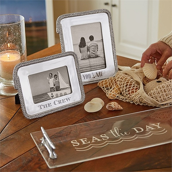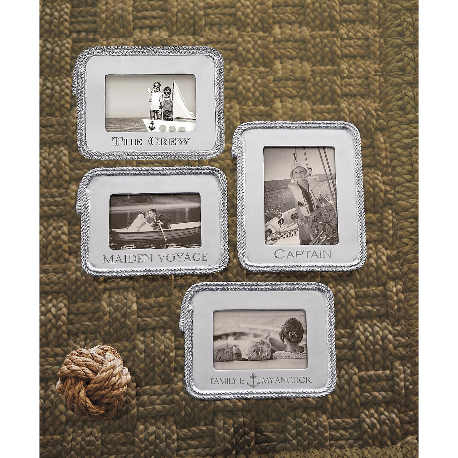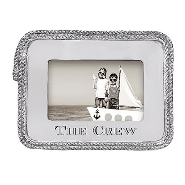 Main view Gift Box (sample) Product Details Mariposa® THE CREW 6x4 ROPE Statement Frame by Mariposa® — From Mariposa's High Seas Collection, THE CREW 4" x 6" Rope Statement Picture Frame is a wonderful way to showcase your boating team. Artfully woven rope edges the perimeter of this handsculpted frame creating the perfect balance of casual nautical design and haute decor--on the High Seas or at Home. Handcrafted from 100% recycled, buffed-until-brilliant aluminum. Beautifully boxed in a Navy Mariposa Gift Box to make gifting easy! SendAFrame stocks the entire Mariposa® picture frame collection. To start - or add to your collection, click: Mariposa® Design Collection Important Note: Mariposa items are hand engraved. Your piece may differ slightly from the photo. FeaturesImportant Note: Mariposa items are hand engraved. Your piece may differ slightly from the photo. THE CREW 6x4 ROPE Statement Frame by Mariposa® Mariposa® FALL CELEBRATION Savings - Buy More / Save More * Add this item to your cart for the full details of this promotion. Conditions may apply. Model #13176741 $84.00 only 1 left, order soon. In stock Ships next business day [?] Your Price Match is Active Your request for a price of $0.00 for a minimum quantity of has been accepted. You have [time] left to purchase this item for $0.00 instead of $84.00 each. Find a Lower Price? We BEAT All Authorized Retailers [?] FEATURESDisplays:4"x6"Material:AluminumFinish:SilverOccasion:Birthday, Celebrating Travels, Group Events + Parties, Friendship, Good luck, Inspirational, Thank-Motivate-RewardStyle:Contemporary, Eco-Friendly-Recycled, Santa Fe, Sophisticated, Sports & leisure, Words & whimsy, Nautical & Shore, Expressions > ready madeBrand:Mariposa®Display Type:Desktop Only This item ships in its own box SHARE THIS ITEM Share on Facebook