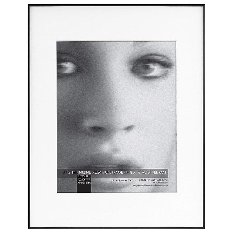 Main view Reverse (sample) Framelok System Catalog Photo Product Details Framatic FINELINE Black Aluminum 11x14/8x10 Matted by Framatic® — Use the Framatics® FINELINE series for flattering, minimal, contemporary presentation of your art or prints. Thin aluminum frame is an elegant way to display photos and artwork Black finish Patented 'FRAMLOK' assembly system allows you to easily insert photo or artwork Polished edge glass Includes an adjustable hanger for either vertical or horizontal wall display Crafted by FRAMATIC®. FINELINE Black Aluminum 11x14/8x10 Matted by Framatic® Model #716242007409 List $48.00 You pay $38.95 In stock Ships next business day [?] Your Price Match is Active Your request for a price of $0.00 for a minimum quantity of has been accepted. You have [time] left to purchase this item for $0.00 instead of $38.95 each. Find a Lower Price? We BEAT All Authorized Retailers [?] FEATURESDisplays:8"x10"Material:AluminumFinish:BlackOccasion:Business & office, Home decoratingStyle:Architectural, Contemporary, MinimalOrientation:BothBrand:FramaticDisplay Type:Wall Only Approx. Overall Dimensions:11 1/8"x14 1/8"x1" This item ships in its own box SHARE THIS ITEM Share on Facebook