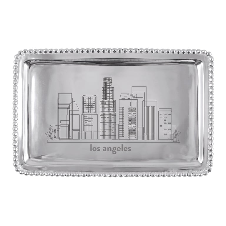 Main view Product Details Mariposa® The LOS ANGELES-CA CITYSCAPE BEADED 7in BUFFET TRAY crafted by Mariposa® — The BEADED BUFFET TRAY with a CITYSCAPES special LOS ANGELES hand engraving. Perfectly sized to fit a check, making this a great way to jazz up a monetary gift. Important Note: Mariposa items are hand engraved. Your piece may differ slightly from the photo. We stock ALL the Mariposa Cityscape styles. Click here to goto a directory of cities. Want to order cityscape on another Mariposa style? Ask our customer service LIVE CHAT rep for assistance. We can get special orders from Mariposa in 2-3 days. FeaturesImportant Note: Mariposa items are hand engraved. Your piece may differ slightly from the photo. The LOS ANGELES-CA CITYSCAPE BEADED 7in BUFFET TRAY crafted by Mariposa® Mariposa® FALL CELEBRATION Savings - Buy More / Save More * Add this item to your cart for the full details of this promotion. Conditions may apply. Model #13779218 $38.95 only 1 left, order soon. In stock Ships next business day [?] Your Price Match is Active Your request for a price of $0.00 for a minimum quantity of has been accepted. You have [time] left to purchase this item for $0.00 instead of $38.95 each. Find a Lower Price? We BEAT All Authorized Retailers [?] FEATURESMaterial:AluminumFinish:SilverOccasion:Birthday, Congratulations, Corporate gifts, Employee honors, Group Events + Parties, Friendship, Inspirational, Military HonorsStyle:Contemporary, Santa Fe, Shabby Chic, Sports & leisure, Eco-Friendly-Recycled, ModernBrand:Mariposa®Display Type:not applicable n/a Approx. Overall Dimensions:6 3/4"x3 3/4"x1/2" This item ships in its own box SHARE THIS ITEM Share on Facebook