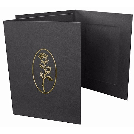Our standard photo event folder in black, accented with a beautiful gold rose foil design. The design is hot stamped (imprinted) right onto the front of the folder.