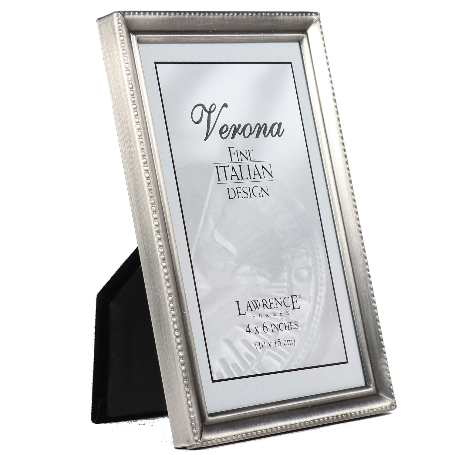 Main view Product Details Lawrence Frames® Satin antiqued pewter w/caviar bead trim 4x6 frame — Our beaded antiqued pewter frame is nicely crafted with tight seams and corners.Attractively backed for wonderful desk appeal.Dual easel back for portrait or landscape tabletop display. Wall mounts for easy hanging. Glare resistant glass lens. Edge measures 3/8" wide all around.By Lawrence®. Click the Lawrence Frame collection to shop the entire line. Satin antiqued pewter w/caviar bead trim 4x6 frame Lawrence® HOLIDAY CELEBRATION Savings: Buy More / Save More * Add this item to your cart for the full details of this promotion. Conditions may apply. Model #751148035019 List $18.50 You pay $13.95 In stock Can be shipped today [?] Your Price Match is Active Your request for a price of $0.00 for a minimum quantity of has been accepted. You have [time] left to purchase this item for $0.00 instead of $13.95 each. Find a Lower Price? We BEAT All Authorized Retailers [?] FEATURESDisplays:4"x6"Material:Pewter (plate)Finish:SilverOccasion:Anniversary, Birthday, Good luck, Mother`s Day, Retirement, Teacher gifts, Thank-Motivate-Reward, Celebrating Travels, WeddingStyle:Antique, Classic, TraditionalOrientation:BothBrand:Lawrence Frames®Display Type:Desktop or Wall Approx. Overall Dimensions:4 1/8"x6 1/8"x3/4" This item ships in its own box SHARE THIS ITEM Share on Facebook