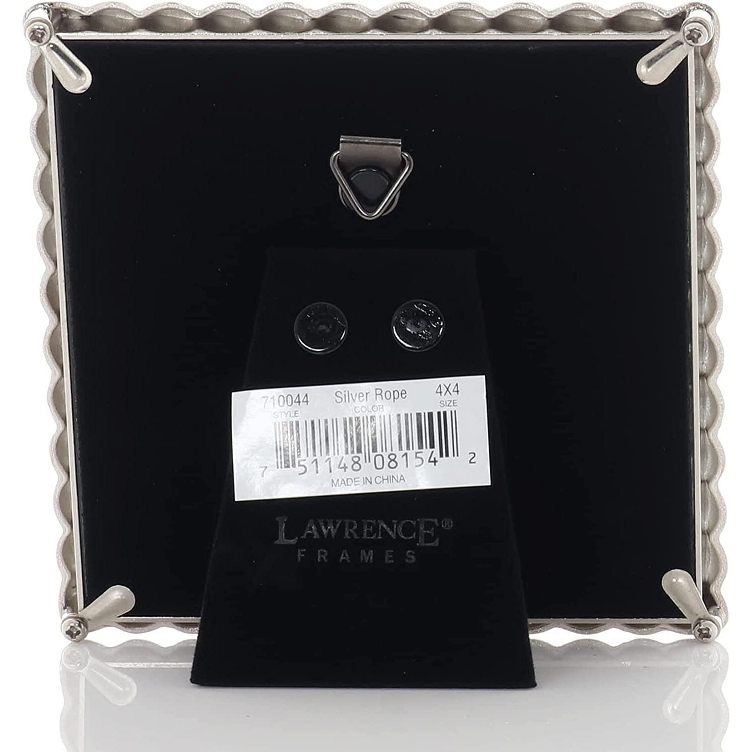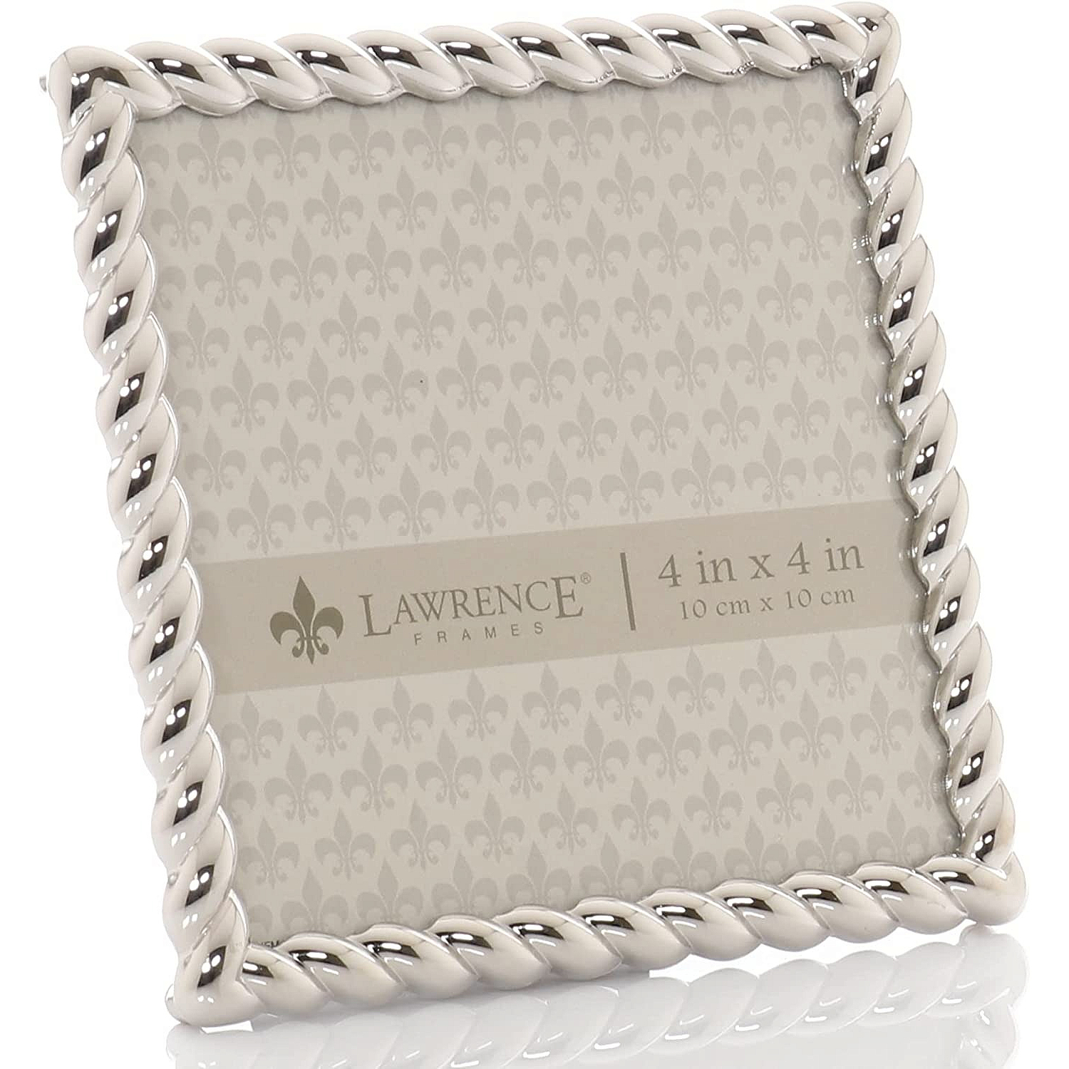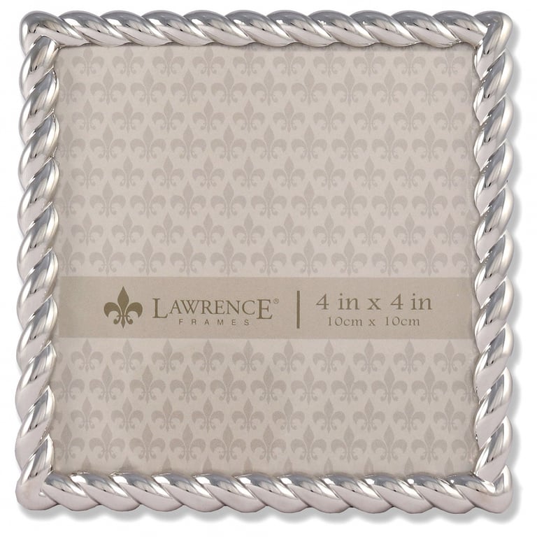 Main view Product Details Lawrence Frames® Silverplate ROPE BORDER 4x4 frame — Stain finish silver plate frame is nicely crafted with a beautiful rope trim.Attractively backed for wonderful desk appeal.Hardboard backed with easel for tabletop display. Walll mount for easy hanging. Glare resistant glass lens.Crafted by Lawrence®. Silverplate ROPE BORDER 4x4 frame Model #751148081542 List $24.00 You pay $17.95 In stock Can be shipped today [?] Your Price Match is Active Your request for a price of $0.00 for a minimum quantity of has been accepted. You have [time] left to purchase this item for $0.00 instead of $17.95 each. Find a Lower Price? We BEAT All Authorized Retailers [?] Approx. Overall Dimensions:4 5/8"x4 5/8"x5/8" This item ships in its own box SHARE THIS ITEM Share on Facebook