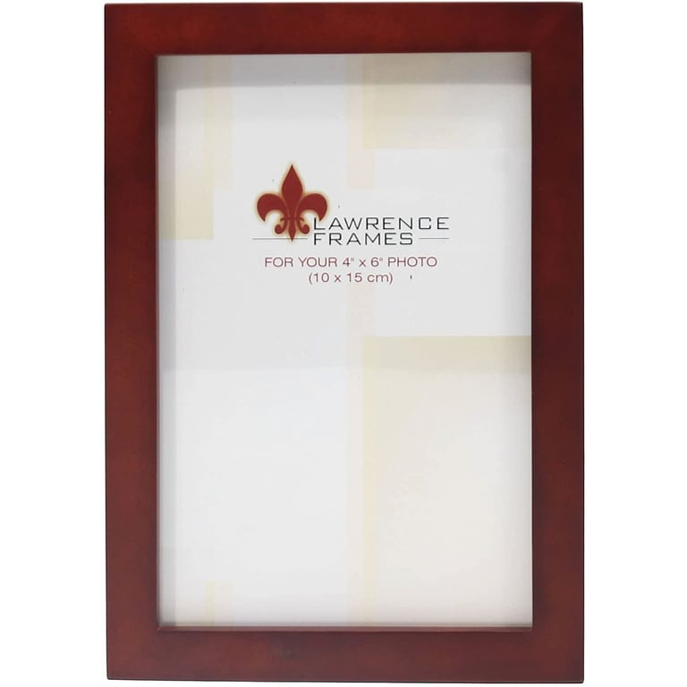 Main view Product Details Lawrence Frames® Dark Walnut square-corner frame by Lawrence® — Dark Walnut stained frame is elegant and an easy style to decorate with.Constructed of matched varnished hardwoods with tailed corners and exact fitting back. Frame edge is a very contemporary ½" all-around.Dual easel for landscape or portrait tabletop use; wall mounting hooks included. Glare resistant glass lens.This is a classic style at a great price. Quality crafted by Lawrence Frames®. Dark Walnut square-corner frame by Lawrence® Model #751148055659 List $15.00 You pay $11.95 In stock Can be shipped today [?] Your Price Match is Active Your request for a price of $0.00 for a minimum quantity of has been accepted. You have [time] left to purchase this item for $0.00 instead of $11.95 each. Find a Lower Price? We BEAT All Authorized Retailers [?] FEATURESDisplays:4"x6"Material:Wood (full grain)Finish:BrownOccasion:Business & office, Congratulations, Craft Projects, Home decorating, Teacher gifts, Team & coach gifts, Thank-Motivate-RewardStyle:Architectural, Classic, Contemporary, Minimal, TraditionalOrientation:BothBrand:Lawrence Frames®Display Type:Desktop or Wall This item ships in its own box SHARE THIS ITEM Share on Facebook