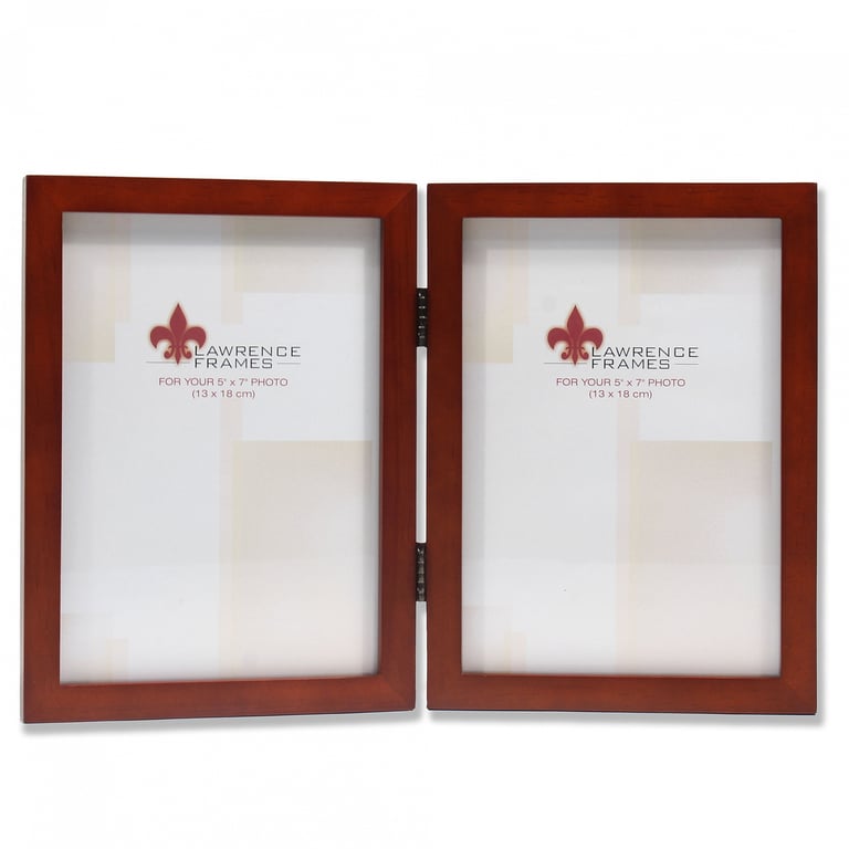 Main view Product Details Lawrence Frames® DARK WALNUT Hinged double in 5x7 frame — Very nicely crafted with select hardwoods, tailored square corners and solid brass hinges.Frame edge is a contemporary ½" all-around.Individual sections have black hardboard backs with swivel security tabs that easily open/lock to insert your prints.Glare resistant glass lenses. By Lawrence®. DARK WALNUT Hinged double in 5x7 frame Model #751148055710 List $30.00 You pay $24.95 This item IS in stock and can be expected to ship 11/25/2025 Your Price Match is Active Your request for a price of $0.00 for a minimum quantity of has been accepted. You have [time] left to purchase this item for $0.00 instead of $24.95 each. Find a Lower Price? We BEAT All Authorized Retailers [?] This item ships in its own box SHARE THIS ITEM Share on Facebook