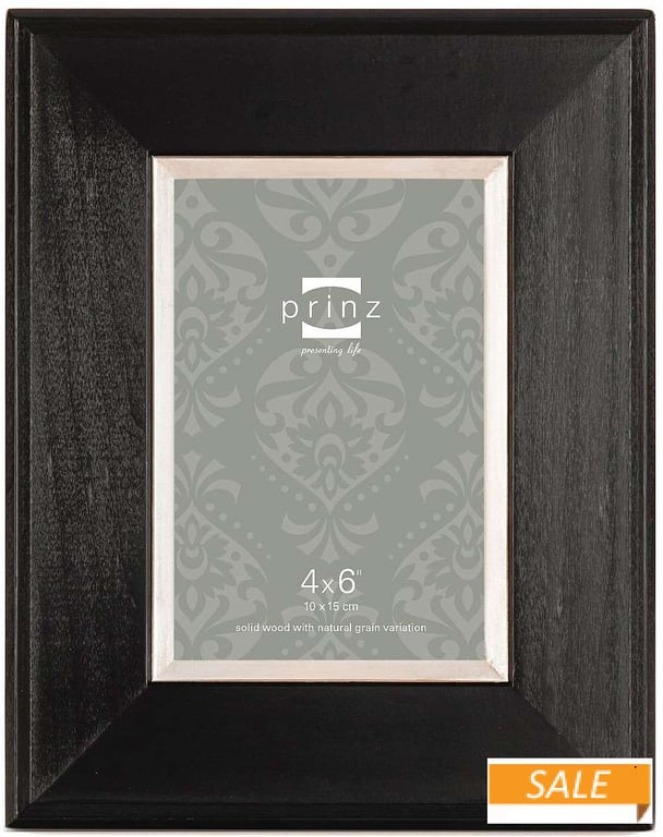 Main view Detail Product Details Prinz® frames & albums WYATT black wide-border frame from Prinz® — The WYATT black stained poplar wood frames have a natural grain, rustic look that make them terrific for casual settings.Features a two-way easel for vertical or horizontal table-top display. Or, use the included hook for easy wall mounting. Glare resistant glass lens.By Prinz®. WYATT black wide-border frame from Prinz® Model #086981758376 List $24.00 You pay $11.90 In stock Your Price Match is Active Your request for a price of $0.00 for a minimum quantity of has been accepted. You have [time] left to purchase this item for $0.00 instead of $11.90 each. Find a Lower Price? We BEAT All Authorized Retailers [?] FEATURESDisplays:4"x6"Material:Wood (full grain)Finish:BlackOccasion:Friendship, Home decorating, Housewarming, Retirement, Teacher gifts, Celebrating TravelsStyle:Rustic/Lodge, Santa Fe, Distressed - Weathered, CoastalOrientation:BothBrand:Prinz® frames & albumsDisplay Type:Desktop or Wall This item ships in its own box SHARE THIS ITEM Share on Facebook