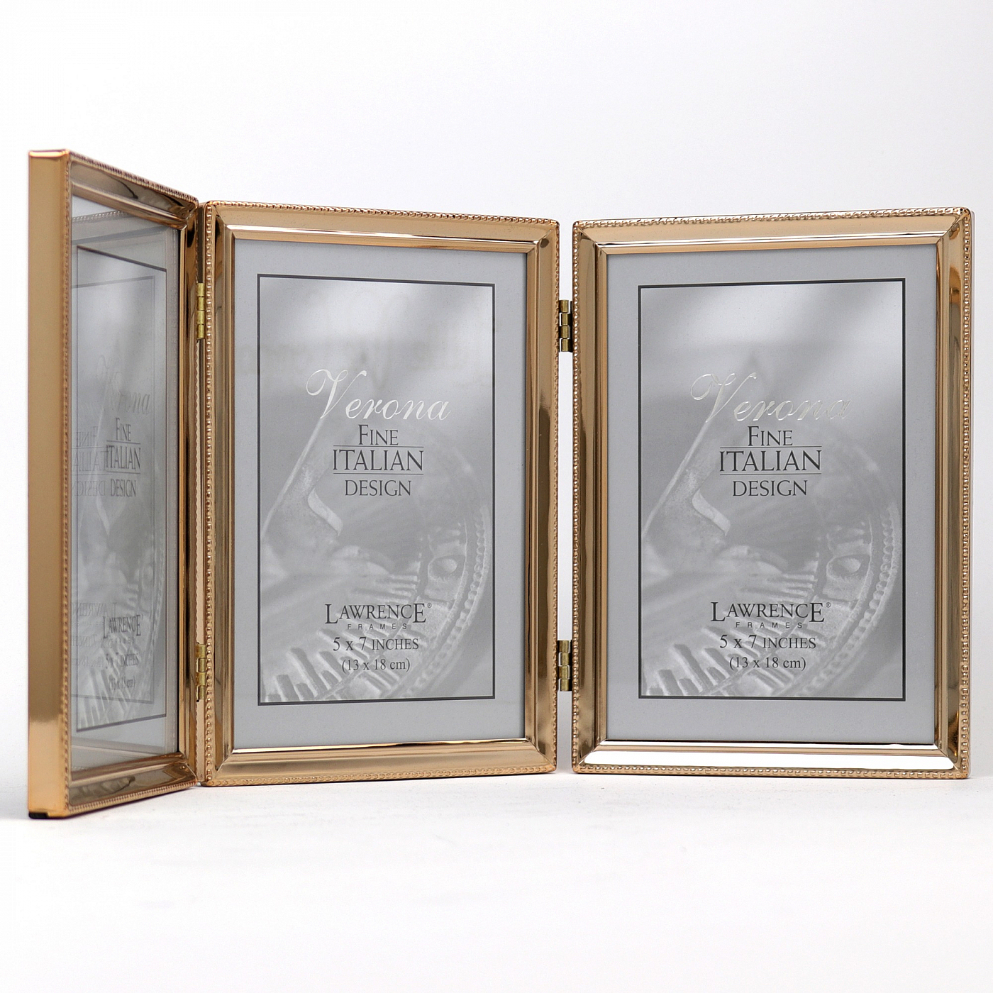 Main view Product Details Lawrence Frames® Gold plated hinged 5x7 triple w/caviar bead trim — Our polished gold plate frame is nicely crafted with invisible seams and corners.Attractively backed for wonderful desk appeal.Glare resistant glass lens. Brass hinges for smooth closing.We often recommend this frame for easy gift giving since customers tell us they enjoy the quality, detail look.Produced by Lawrence®. Gold plated hinged 5x7 triple w/caviar bead trim Model #48079013 List $52.00 You pay $42.95 In stock Ships next business day [?] Your Price Match is Active Your request for a price of $0.00 for a minimum quantity of has been accepted. You have [time] left to purchase this item for $0.00 instead of $42.95 each. Find a Lower Price? We BEAT All Authorized Retailers [?] FEATURESDisplays:5"x7"Material:Gold plateFinish:GoldOccasion:Anniversary, Birthday, Good luck, Graduation, Retirement, Romantic, WeddingStyle:Classic, Traditional, RomanticOrientation:Vertical OnlyBrand:Lawrence Frames®Display Type:Desktop or Wall This item ships in its own box SHARE THIS ITEM Share on Facebook