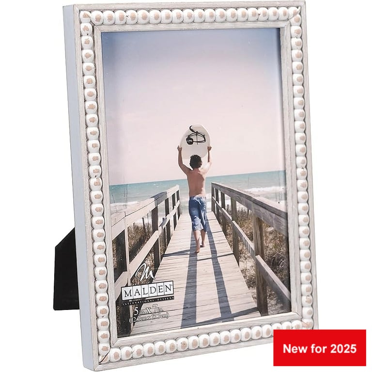 Back to results Scroll Items 3127 of 11052 Family Members 4"x6" - BEADED white wash $9.95 8"x10" - BEADED white wash $15.95 Main view Product Details Malden Designs® BEADED WHITEWASH 5x7 frame — White distressed mdf wood beaded style in a carved look. Displays a 5x7 print. Includes mounts for easy wall hanging and table-top easel.Acid free backing for life-time care of your photo.Crafted by Malden Design®. BEADED WHITEWASH 5x7 frame Model #096287185448 List $16.50 You pay $11.95 In stock Can be shipped today [?] Your Price Match is Active Your request for a price of $0.00 for a minimum quantity of has been accepted. You have [time] left to purchase this item for $0.00 instead of $11.95 each. Find a Lower Price? We BEAT All Authorized Retailers [?] FEATURESDisplays:5"x7"Material:Wood (full grain)Finish:Ivory/Cream, WhiteOccasion:Home decorating, Celebrating TravelsStyle:Contemporary, Distressed - Weathered, Rustic/LodgeOrientation:BothBrand:Malden Designs®Display Type:Desktop or Wall This item ships in its own box SHARE THIS ITEM Share on Facebook