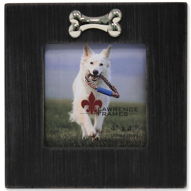 A perfect frame for the dog lover; this 4"x4" black frame has a silver accent bone.