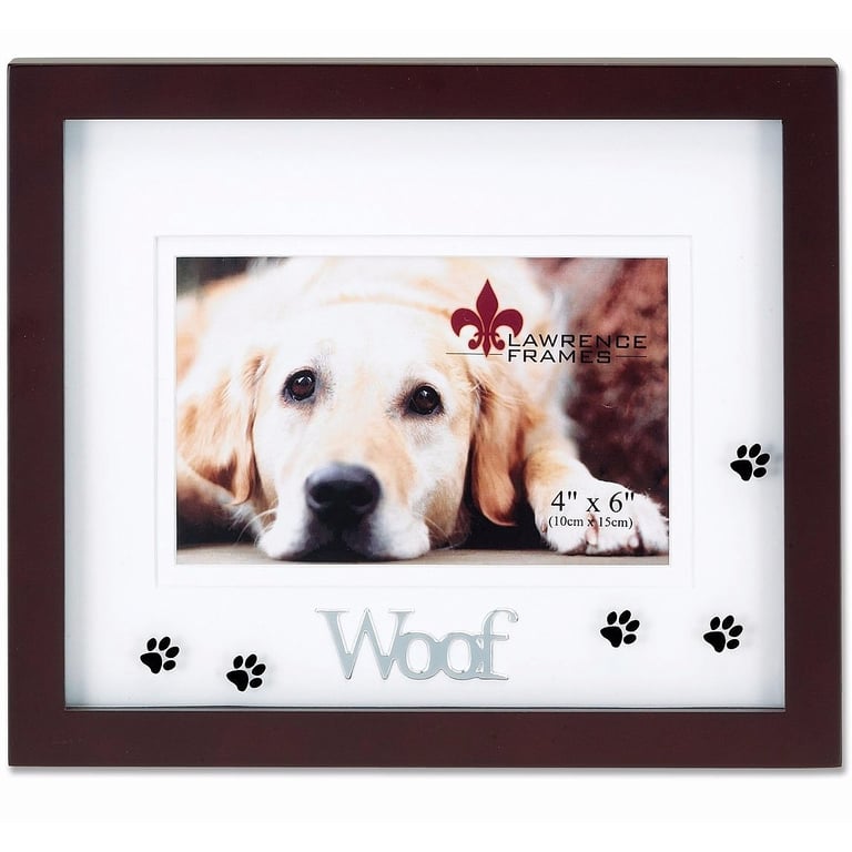 Product Details Lawrence Frames® WOOF Walnut Shadow-box frame by Lawrence® — A perfect frame for the dog lover! This 4" x 6" (Horizontal) walnut wood shadow box frame with two bevel cut acid free mats to give your photo great depth. Frame comes individually boxed. Includes easel backing for tabletop display and hangers for wall mounting. Holds a 6"x4" photo behind a glare resistant glass lens.By Lawrence®, fine frames for generations. WOOF Walnut Shadow-box frame by Lawrence® Model #751148061964 List $30.00 You pay $20.95 This item IS in stock and can be expected to ship 02/05/2026 Your Price Match is Active Your request for a price of $0.00 for a minimum quantity of has been accepted. You have [time] left to purchase this item for $0.00 instead of $20.95 each. Find a Lower Price? We BEAT All Authorized Retailers [?] FEATURESDisplays:4"x6"Material:Wood (full grain)Finish:BrownOccasion:Birthday, Friendship, Thank-Motivate-Reward, Pet LoveStyle:Animals & pets, Contemporary, Teens & tweens, Words & whimsy, Sentiments | ready madeOrientation:Horizontal OnlyBrand:Lawrence Frames® This item ships in its own box SHARE THIS ITEM Share on Facebook