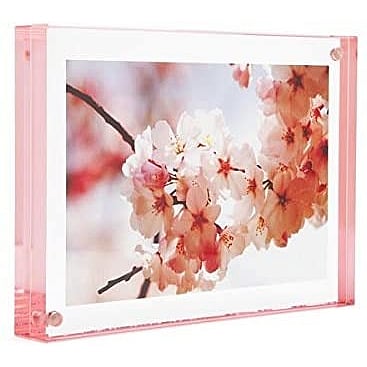 That's the power of this wonderful desk frame. Super strong pill-sized magnets securely and firmly sandwich your photo for this wonderful effect.